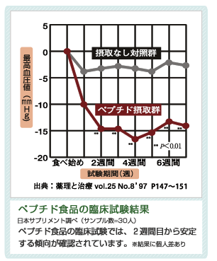 ペプチドエースつぶタイプは2週間飲むと血圧が安定するという研究結果がある